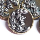 21 Antique Vintage Metal Picture Buttons Floral Design