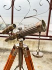 Handmade Nautical Antique Brass Telescope Double Barrel With Tripod Stand
