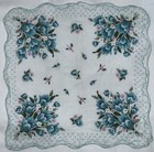 Blue Floral Handkerchief 10 Inch Square Embroidered Edge Something Blue