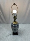 Vintage Blue & White Porcelain Vase Table Lamp Gold Floral Chinoiserie Oriental