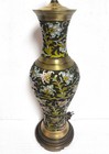 Antique Asian Oriental Cloisonné Champleve Lamp Gilt Gold Enameled Solid Brass