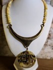 Genuine Yellow Jade With Ancient Chinese Dragon Pendant In Brass Necklace