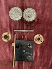 Black Porcelain Glass Door Knobs Mortise Lock Skeleton Escutcheon Victorian Vtg