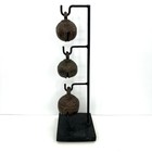 Vintage Burmese Elephant W/2 Bronze Bells Ricking Figurine Of Carved Wood