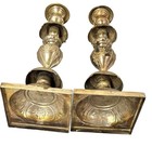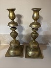 Vintage Pair Heavy Solid Brass Engraved Candle