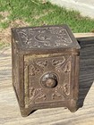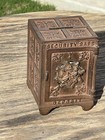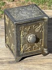 Antique Cast Iron Coin Bank Safe Miniature Vault Metal Lockbox Ornate Decor