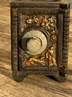 Antique Kenton Brand Ornate Cast Iron Combination Safe Savings Bank 3.5”x2.5”