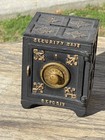 Vintage Antique Cast Iron Security Safe Deposit Toy Money Coin Bank