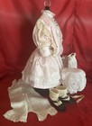 Antique Child's Dress Doll Victorian White Cotton Pretty Floral Vintage Lace