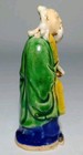 Two Antique Vintage Chinese Mud Men Figurines Blue & Yellow Very Old Carrying