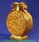 7'' Old Chinese Dynasty Bronze Gold Dragon Loong Beast Ruyi Ear Bottle Vase