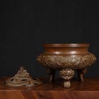 5.9" Old Chinese Dynasty Pure Bronze Dragon Lion Beast Incense Burner Censer