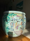 Antique Chinese Famille Verte Pot With Yellow Glaze And Hand Painted Figures