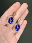 Antique French 14k Gold Enamel Screw Back Earrings – Cobalt Blue Starry Drops