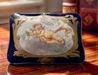 Antique French Cobalt Blue Porcelain Box Gilt Cherub Putto Signed Anny Sevres St