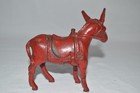 Antique Cast Iron Red Donkey Figural Still Coin Bank