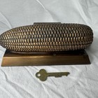 Antique Vintage 6” Long Cast Iron Ear Of Corn Tipton State Coin Bank W/ Key