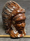 Antique Ceramic Indian Head Coin Bank In Full Headdress