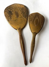 Vintage Brass Vanity Hair Brush & Handheld Mirror Set Gold Tone Floral Design