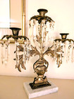 Antique Brass And Crystal Candleabras With Marble Stand 14 In' Tall & 14 In'wide