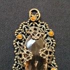 Antique Art Deco Necklace Emerald Cut Amber Glass Gold Filgree Setting Czech
