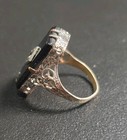 Antique Art Deco Czech Glass Rhodium Plate & Brass Ring