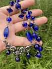 Vtg Antique Czech Glass Lapis Hand Knotted Flapper Length Necklace Beads 31”