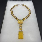 Vtg Antique Art Deco Riviere Amber Czech Glass Rectangular Drop Pendant Necklace