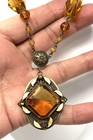 Antique Vintage Czechoslovakia Czech Faceted Amber Blue Glass Pendant Necklace