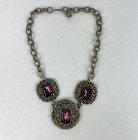 Antique Vintage Czech? Crystal Glass Graduated Necklace Purple & Clear 18.5"