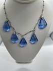 Vintage Necklace Art Deco Antique Blue Czech Glass Pendant