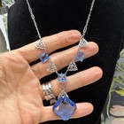 Antique Czech Glass Filigree Art Deco Necklace 1930's Blue