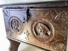 French Antique Oak Tudor Style Box Stool. Carved Portraits. Rare Item.