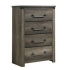 Rustic Gray Farmhouse Chest, 4 Dovetail Drawers, Brass Handles