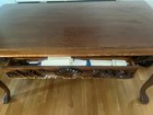 Antique Carved Walnut Wood Desk And Wide Drawer