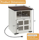 Rustic Farmhouse Nightstand With Charging Station & Glass Barn Door, White