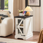 Farmhouse 14'' Side End Table Set Of 2, Narrow Night Stand With Glass Barn Door,