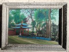 Antique Framed Oriental Home Overlooking Lake Bonzi Tree's Painted Silk Squares