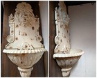 Antique Cast Iron French Gilded Ornate Cherub Mirror W/ Holy Water Well 15”