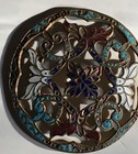 Antique French Champleve Button Enamel W/ Openwork Gilt