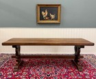 Antique French Country Farm Dining Table Farmhouse Trestle Base Oak 87"w
