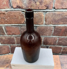 Antique Dark Amber Liquor Whiskey Or Ale Bottle Heavy Glass Hand Blown 10.75"