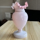 Antique Hand Blown 8 1/2" Pink Blow Ruffled Satin Glass Vase.