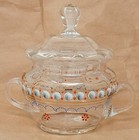 Antique Candy Jar W/ Lid Hand Painted Enamel Blown Clear Glass Applied Handles