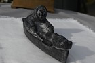 A Wolf Original Soapstone Hand Carved Inuit Fisherman/trapper In A Boat