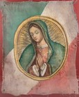 Antique 20th C Mexico Spanish Retablo Painting Tin Painting Virgin De Guadalupe