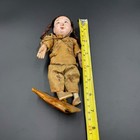 Antique Oriental ~6.75" Handmade Asian Doll Painted Face Lead Feet Silk Clothes