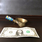Antique Metal Gold Enamel Indian Patterned Brass Pot Lidded Asian Handmade Lid