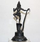 Vintage Bronze Brass Hindu Figurine God Krishna Dancing On Head Of Kaliya 8.5"