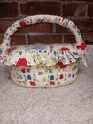Vtg. Facric Sewing Basket Hearts